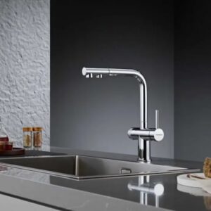 Vòi rửa chén dây rút 3 đường nước NOBINOX MIRA NX333 được thiết kế theo hướng tối ưu hóa công năng trong không gian bếp có nhiều nguồn nước sử dụng. Tổng thể sản phẩm thể hiện sự cân đối giữa thân vòi và các chi tiết cấu tạo, mang lại cảm giác gọn gàng và hiện đại khi lắp đặt trên khu vực chậu rửa. Kiểu dáng chữ L với các đường nét tối giản giúp sản phẩm phù hợp với nhiều phong cách bếp khác nhau, từ căn bếp gia đình đến không gian bếp thiết kế hiện đại. Tay gạt được bố trí ngang thân vòi nhằm tối ưu diện tích sử dụng và giúp thao tác đóng mở nước trở nên thuận tiện hơn.